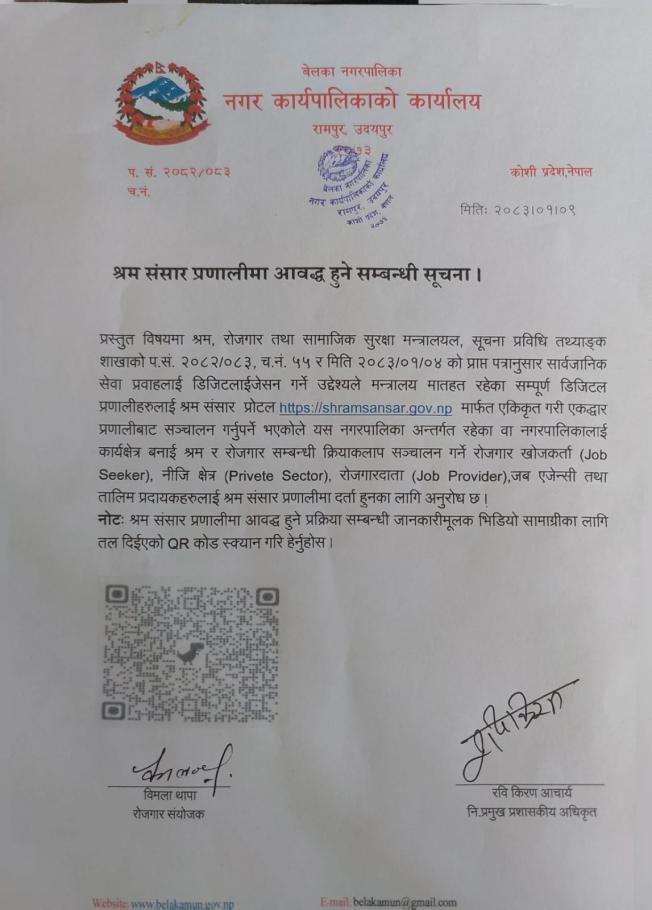 श्रम संसार प्रणालीमा आवद्व हुने सम्बन्धि सूचना !!!