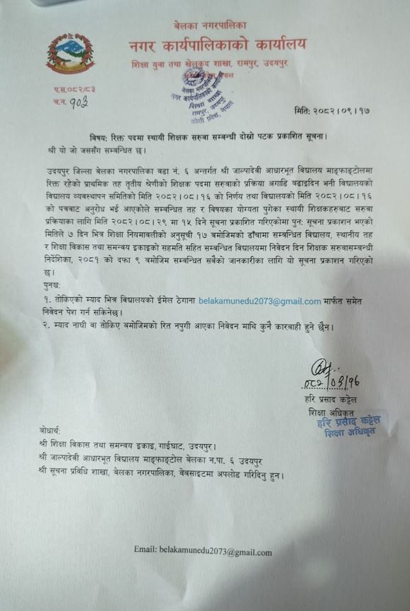 रिक्त पदमा स्थायी शिक्षक सरुवा सम्बन्धि दोस्रो पटक प्रकाशित सूचना !!!